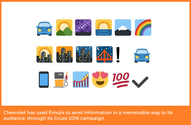 Emojis on social media: Chevrolet-has-used-Emojis-to-send-information-in-a-memorable-way-to-its-audience,-through-its-Cruze-2016-campaign.