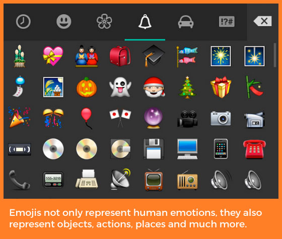 Emojis-not-only-represent-human-emotions,-they-also-represent-objects,-actions,-places-and-much-more.