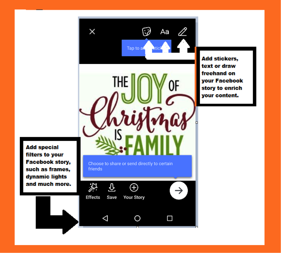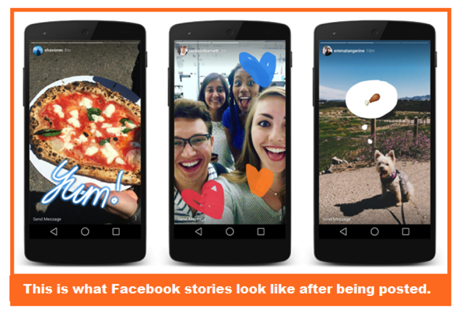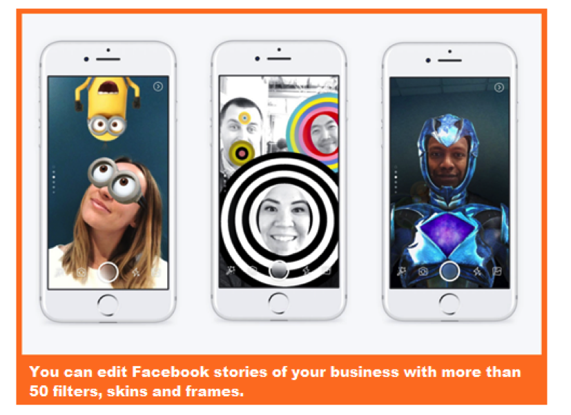 - Due to its ease of use, to the numerous stickers and comic filters offers, and the ability to add text, Facebook Stories are the fastest and most effective way to communicate the daily news of your business, example. When you receive new products, day discounts, etc.