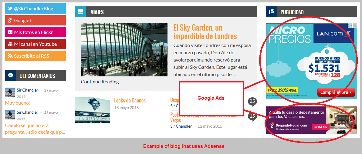 Google AdSense is a Google online advertising service. Adding AdSense to your site is basic step learning how do websites make money, because it enables the automatic exhibition of ads on your web page, so you can receive financial benefits. The notices shown can be graphics or texts and are selected automatically by Google, based on an automatic betting system. The image bellow shows you an example of how a blog uses AdSense.