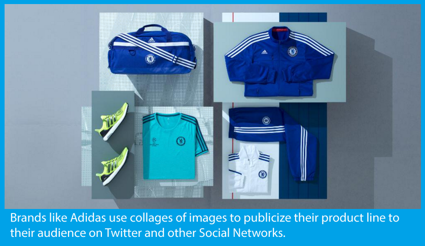 Adidas usually shares collages of images on their Twitter as you can see below, to promote their products and publicize their collections.