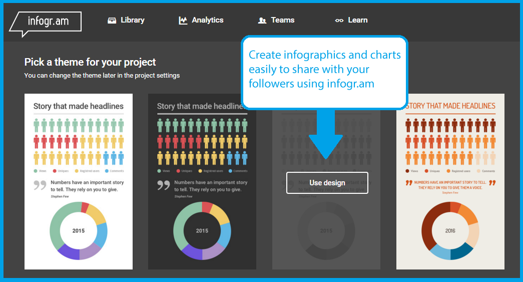 How to create images that are infographics? To do so you can use infogr.am, an online application where you can register for free. There you will have the possibility to choose different models based on what you want to create, and you will be assisted throughout the entire creative process (which is remarkably simple). Try it out and tell us about your experience!