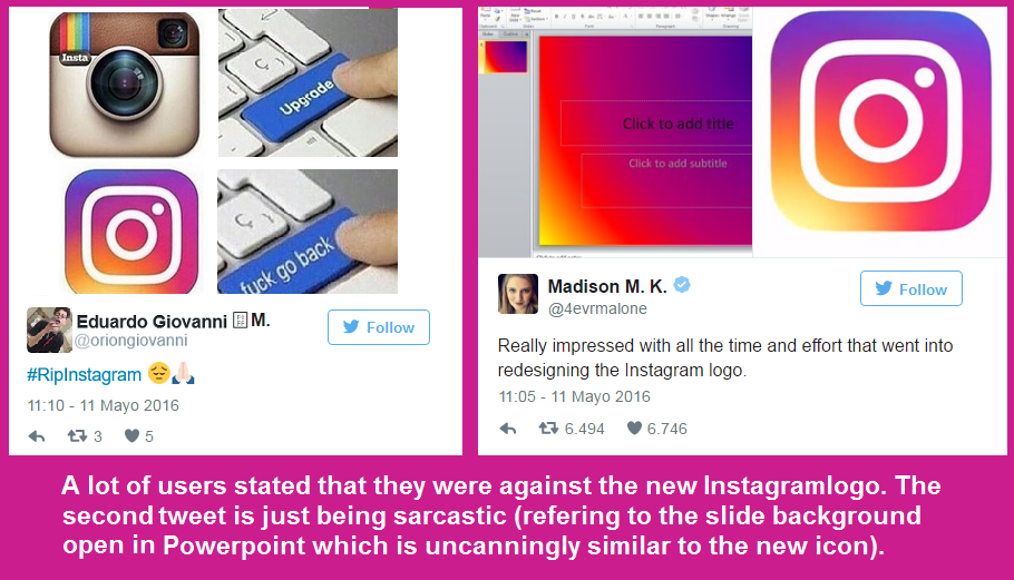 Nonetheless, numerous designers responded by offering alternatives to the icon. Similarly, a lot of the Social Network’s users seemed unhappy with Instagram’s new logo, and they made it known through their social accounts (especially on Twitter):