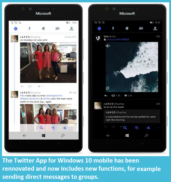 6- New functions will be added to the Twitter app for the Universal Windows 10 platform, such as the possibility to have private conversations in groups