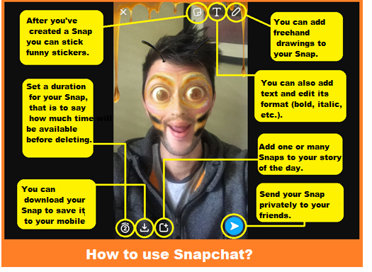 Now let’s take a look at what Snapchat offers to users when it comes to sharing content. As explained by the helpdesk, in this Social Network publications (whether photos or videos) are called “Snaps”.