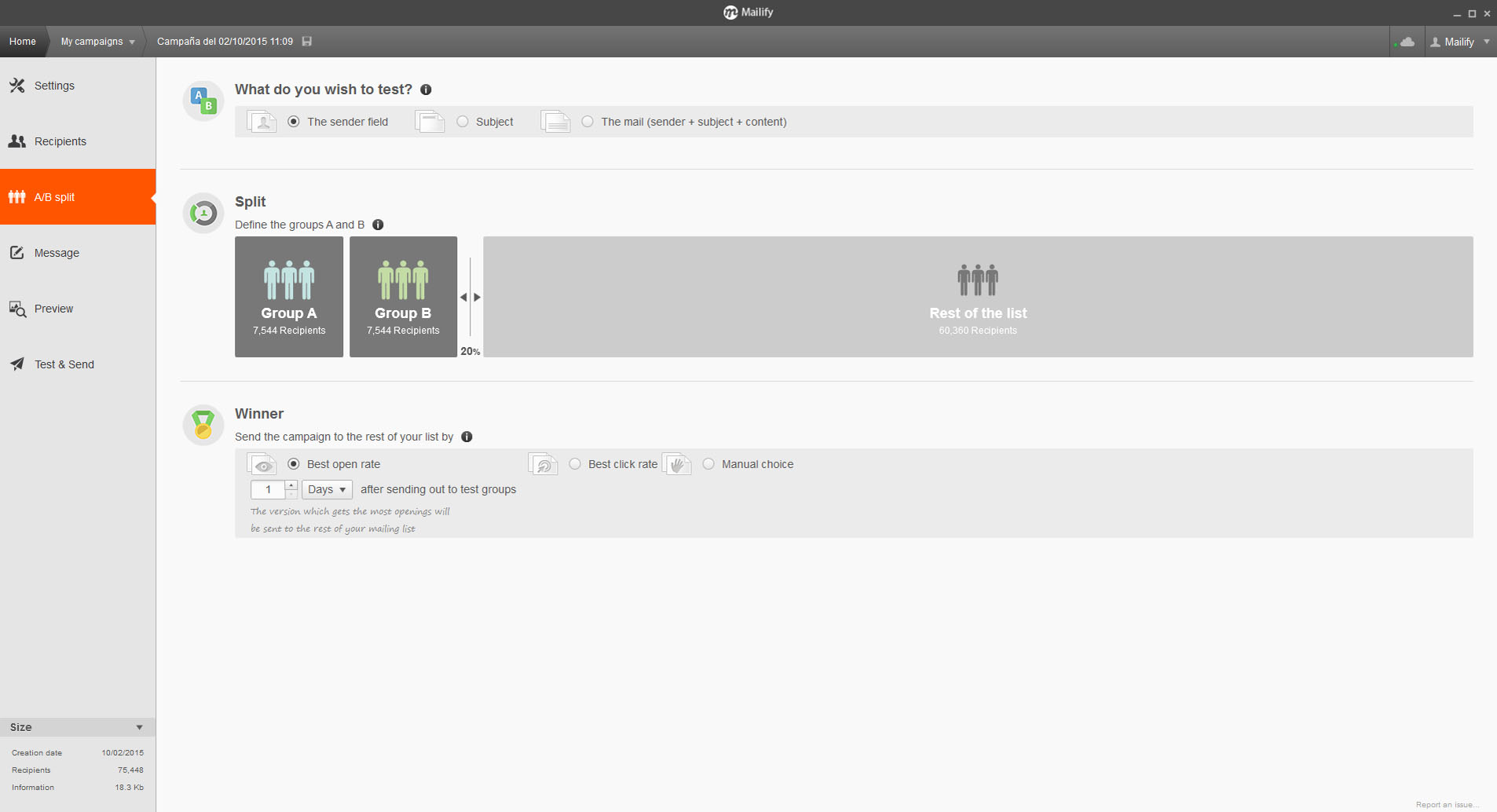 “I don’t know which subject to use”. To have campaign questions is normal and that is why a Test A/B extension is available enabling you to send two versions for the same campaign so you can evaluate the efficiency of each one. The concept that obtains better results is then sent to the rest of the database.