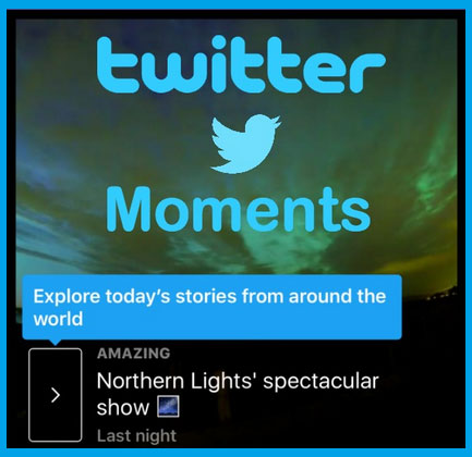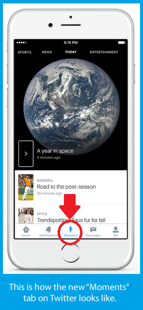 So when users log on to Twitter, they can tap on the new Moments button, identified with the blue lightning bolt.
