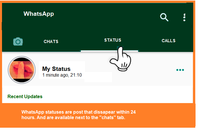 Finally, to promote your offers without being invasive (that is, without people receiving a notification), you can use the Whatsapp Status. This is a tab to upload posts that last 24 hours. And they disappear. The app notifies users that there is a new status by placing a circle next to the name of that tab.