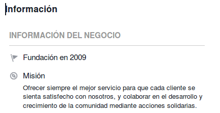 - la sección de Información del negocio, que incluye la misión de tu empresa y quién eres como empresa (“About”)