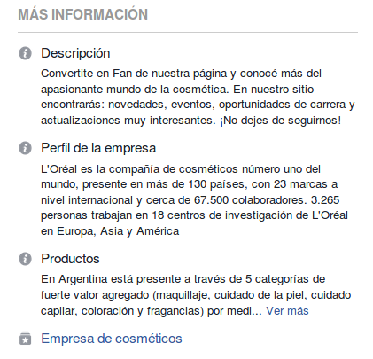 Finalmente, se encuentra la sección “Más información”. Veamos un ejemplo de Loreal, empresa de cosméticos.