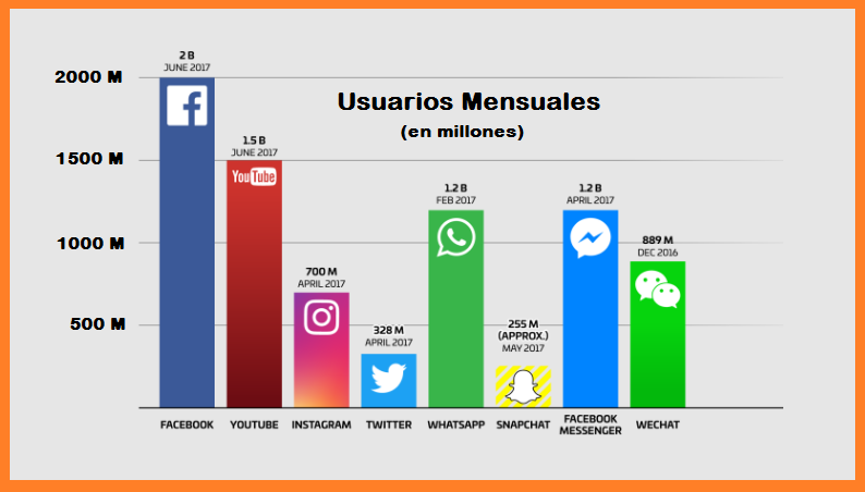 • Hasta Diciembre de 2016 Facebook contaba con más de 1100 millones de usuarios diarios activos desde teléfonos móviles, con un aumento del 23% cada año.