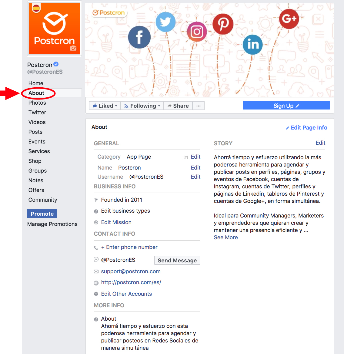 Es importante que los usuarios hallen la información que buscan acerca de tu negocio al visitar tu Página (ten en cuenta que muchos de ellos utilizan Facebook para informarse acerca de datos específicos). Por esa razón, es imprescindible rellenar todos los datos de tu Fan Page completamente.