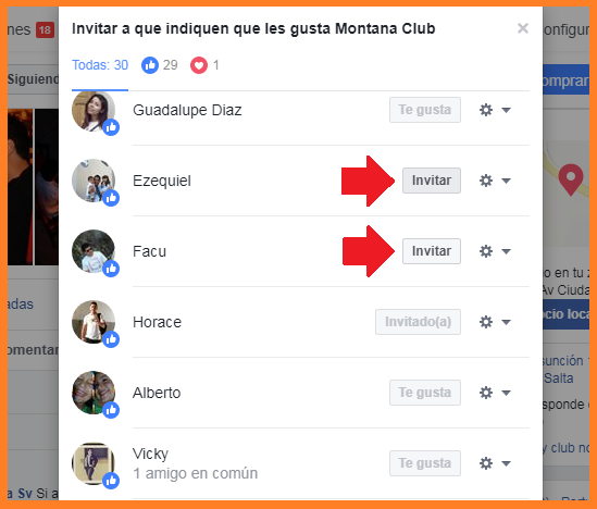 Hacer esto es muy sencillo, sólo tienes que dirigirte a alguno de tus posts que hayan obtenido más Likes, y desplegar el listado de personas que han dado Me Gusta a tu publicación. Al hacerlo verás un botón que dice “Invitar” al lado de cada nombre. Sólo debes presionarlo para enviar la invitación.