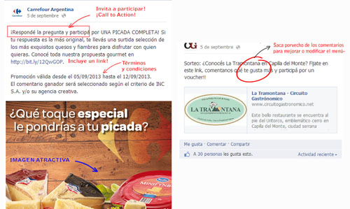• Los concursos que promueven que los participantes suban sus fotos, son muy exitosos. Por ejemplo, Menbur es una tienda de zapatos y creó un concurso muy completo para reforzar la relación con sus fans, aumentar la participación en su fanpage y de paso agasajar a sus seguidoras. Utilizó sólo dos recursos: subir una foto, y juntar “Me gustas” Premiaba a las que subían fotos cómo también a las fans que votaron: