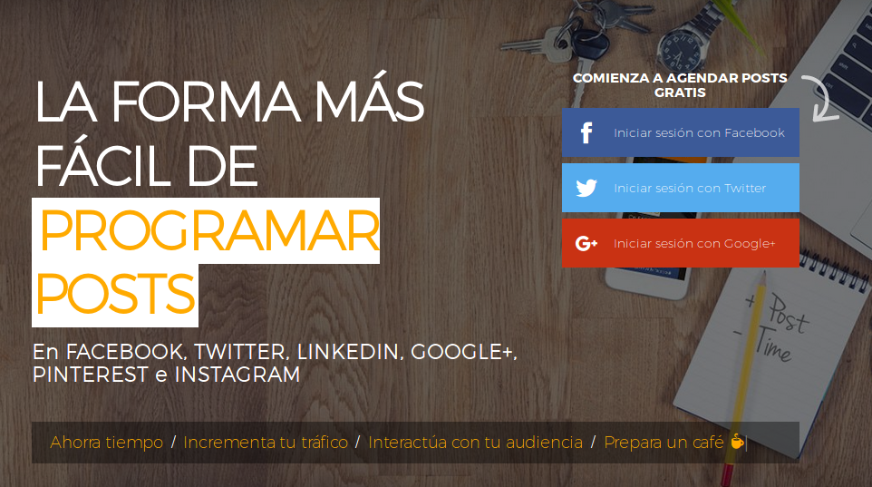 Para que esta tarea de publicar permanentemente no sea tediosa, Postcron es la solución. Te permite programar posts en todas las redes sociales y elegir hasta el horario en que se publican.