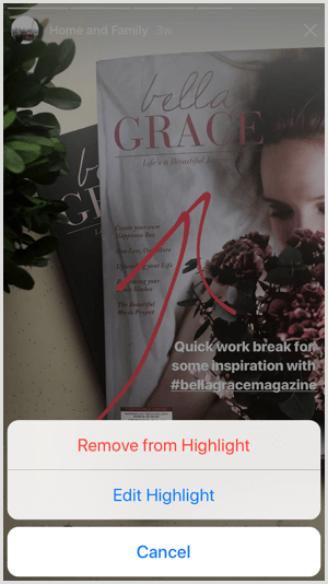 - Tienes tres opciones: editar portada, cambiar el nombre de la Historia Destacada o eliminar aquellas que ya no quieres que se visualicen.