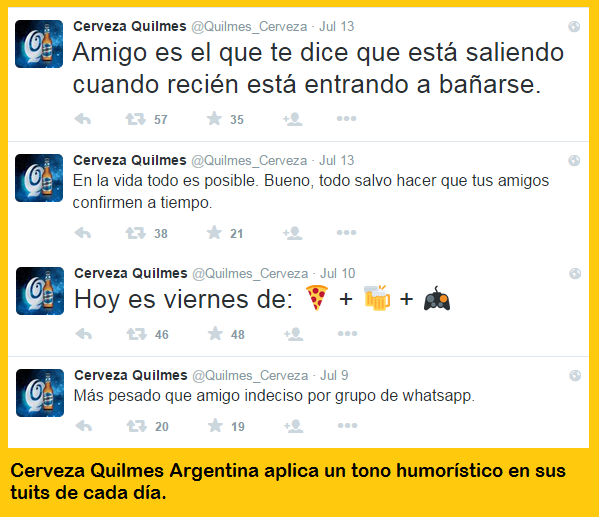 Algunas compañías han comprendido esto perfectamente y es por eso que mantienen conversaciones cotidianas en tonos risueños o irónicos con sus seguidores. Puedes ver algunos ejemplos de esto en la imagen de abajo.
