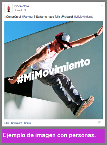 Dado que Facebook es una red social, la mayoría de las personas que se encuentran registradas en el sitio lo utilizan para relajarse durante sus ratos de ocio y ponerse en contacto con otras personas. De ahí la importancia de reflejar esta intención en tus contenidos, para poder estar a tono con la audiencia y no aburrir con serios logos institucionales. Por esta razón te recomiendo incluir a personas humanas en tus imágenes para Facebook.
