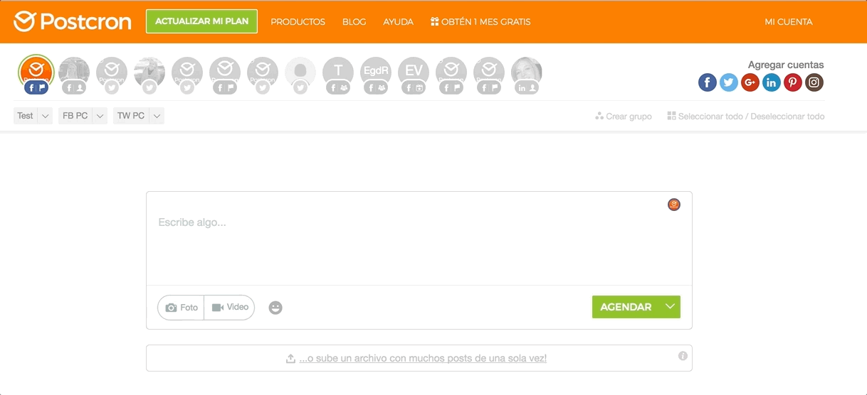 ¡También puedes subir muchos posts en masa de una sola vez, mediante una planilla de cálculo de Google Docs! Esta opción te permite ahorrar tiempo y agendar cientos de publicaciones en una sola sesión de trabajo. Para utilizarla, sólo tienes que seguir los siguientes pasos: