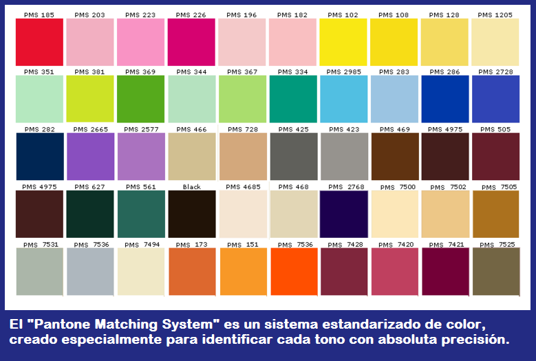 El “Pantone Matching System” es un sistema estandarizado de color, creado especialmente para identificar cada tono con absoluta precisión. Así, cada color incluido en esta clasificación está numerado, con el objetivo de simplificar el proceso de utilización de un tono cromático exacto en diseños e impresiones.