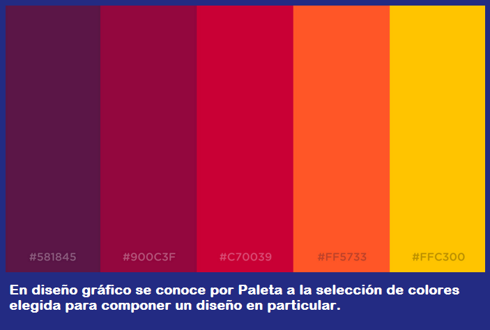 En diseño gráfico se conoce como “Paleta” a la selección de colores elegida para componer un diseño en particular. También puede referir a una caracterización más general, por ejemplo “una paleta de tonos cálidos” significa que los tonos tienen que transmitir calidez (como en el caso del rojo, amarillo o naranja). Lo contrario sería una paleta de tonos fríos (azul, celeste).