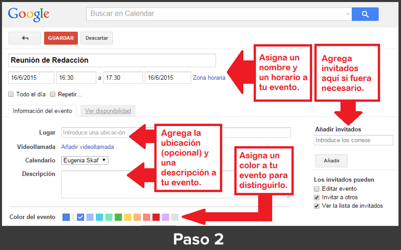 A continuación, puedes agregar información complementaria y sumar contactos a tu evento: