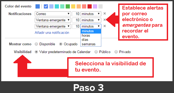Por último, puedes configurar las notificaciones para recordar esa tarea mediante alertas: