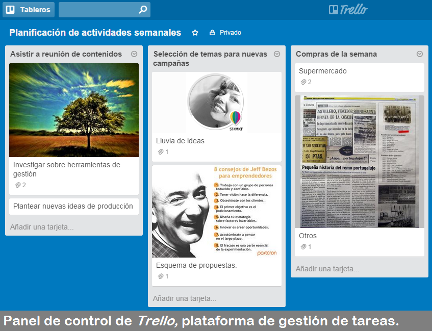 Afortunadamente existen aplicaciones que pueden ayudarte a organizar tus tareas diarias para aumentar tu productividad (¡son lo mejor!). Una de ellas es Trello, una plataforma online para gestionar todas tus actividades. Registrarte es muy sencillo (puedes hacerlo a través de tu cuenta de Google o de manera independiente, mediante correo electrónico y contraseña). Trello te ofrece herramientas prácticas para ordenar tus quehaceres, como la posibilidad de crear listas, adjuntar documentos, establecer alertas, trabajar en equipo, añadir vencimientos a cada tarea y más.