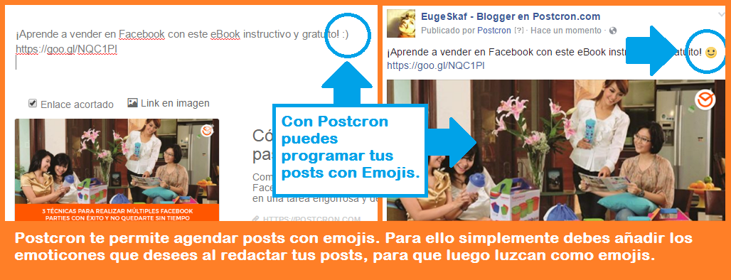 Así, y para obtener el máximo provecho de esta oportunidad, te recomiendo agendar tus posts con emojis con ayuda de Postcron, para que se publiquen automáticamente durante la semana o el mes. Con esta herramienta puedes añadir emoticones al redactar tus posts, que luego se verán como emojis una vez que tu post se haya publicado.