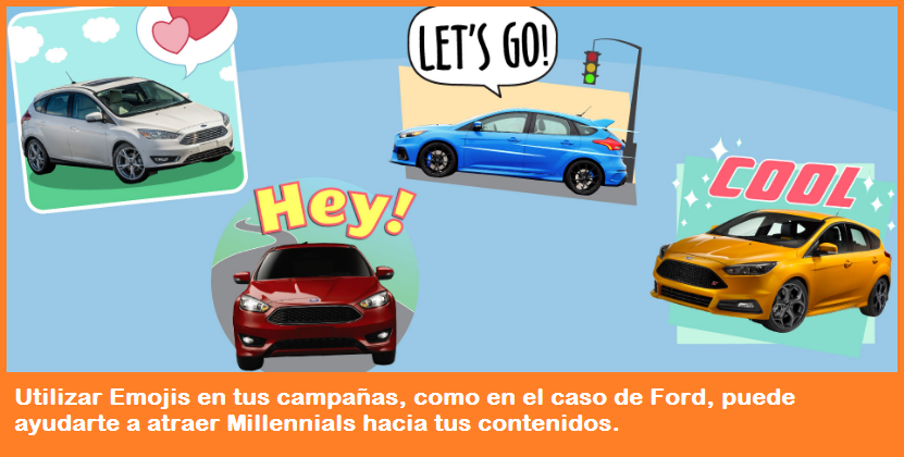 Debido a su circunstancia histórica, estas personas crecieron expuestas a Emojis y se comunican a diario a través de ellos en las diferentes plataformas sociales. Es por ello que si estás tratando de vender un producto o servicio a ese sector de la población, te aconsejo fuertemente que incluyas Emojis en tus publicaciones.