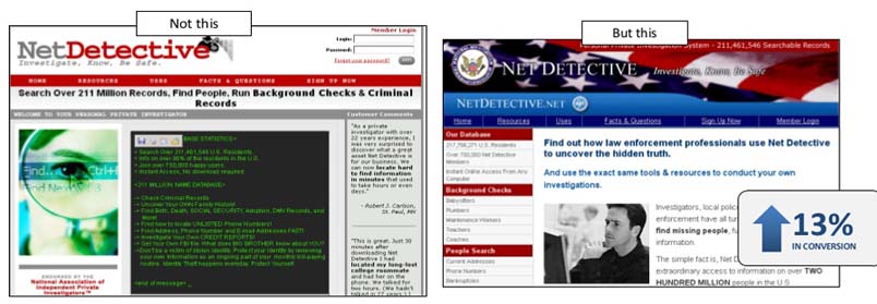 Vejamos este exemplo de análise realizado por Marketing Experiments:
