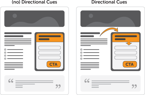 Não deixe livre ao azar o recorrido visual do usuário ao redor da página. Guie e indique onde se deve prestar atenção em sua landing page. Utilize, se necessário, elementos que ajudem a direcionar o olhar pela página.