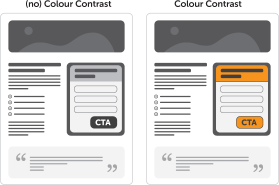 Você pode destacar os botões ou caixas com um CTA através dos espaços em branco, para não gerar ruído com muitas cores ou elementos extras para chamar a atenção.
