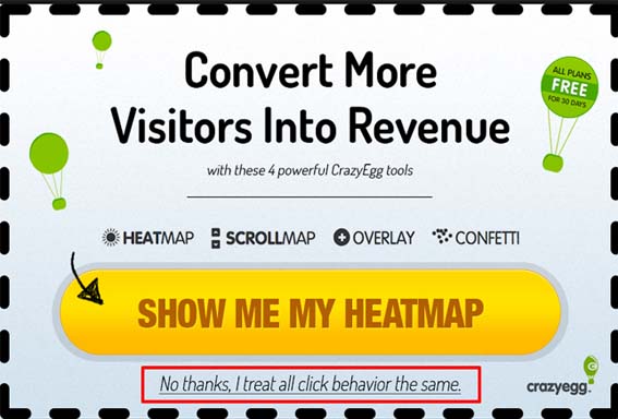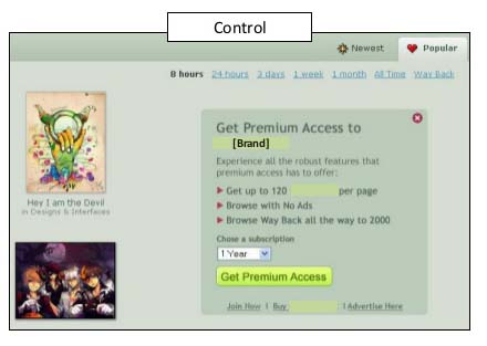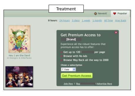 O Marketing Experiments, destaca neste caso um grande erro de combinação, em uma caixa de diálogo na qual contém um CTA para um acesso premium ao conteúdo que este site oferece.