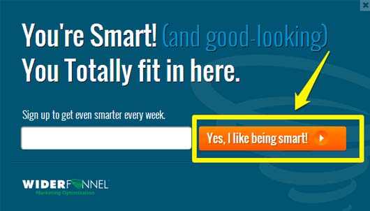 Use uma frase a qual seja difícil responder com NÃO, ou que seja suficientemente incômoda, para que a pessoa que está do outro lado considere a decisão que tomou.  Surpreenda os visitantes do seu site, lembre-se que constantemente estamos expostos a CTAs, e você deve romper a barreira do ceticismo que todos geramos pelo constante bombardeio de informação…