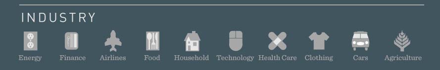 Cada ícone representa uma indústria: