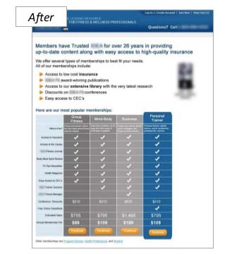 Original: na página não se fazia ênfase em nenhum plano, e nada chamava a atenção. Não havia nenhum elemento que guiava o usuário para tomar uma decisão concreta. Quando uma pessoa enfrenta opções que aparentam ser “iguais”, se encontra em uma situação confusa, da qual é mais fácil se retirar do que parar um minuto e tratar de entender o que exatamente se oferece e qual é a opção mais conveniente. Ao contrário, quando se simplifica o processo destacando e indicando uma opção sobre a outra, a dúvida desaparece mais rápido e fica mais fácil obter o SIM do cliente.