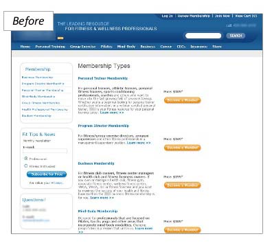 Otimizado: O ruído produzido por tantas cores é retirado, deixando a caixa que inclui o call to action como único complemento enfatizado pela cor.