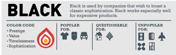 Preta evoca: prestígio, valor, atemporalidade, sofisticação. É popular entre as indústrias relacionadas a: tecnologia, automóveis e roupa.