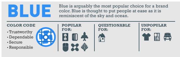 Azul transmite: confiança, credibilidade, segurança, responsabilidade. É popular entre as indústrias relacionadas a: tecnologia, cuidado com a saúde, finanças, energia, agricultura, companhias aéreas.