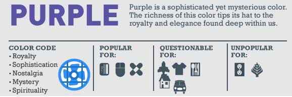 Roxo evoca: elegância, sofisticação, nostalgia, mistério, espiritualidade. É popular entre as indústrias relacionadas a: tecnologia, cuidado com a saúde, finanças.