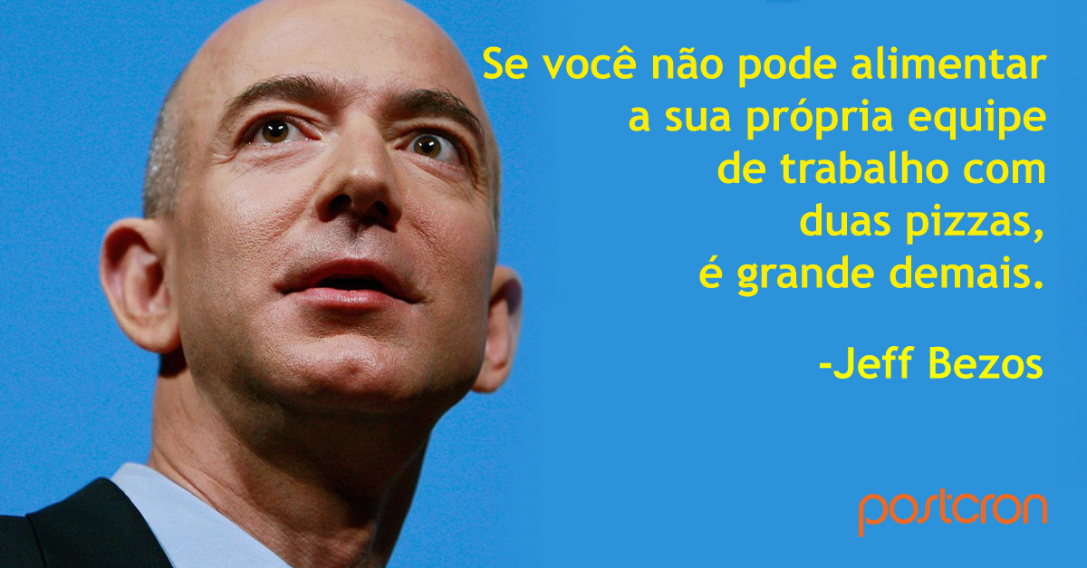 Como Bezos explica no blog de marketing Kissmetrics, os grupos autônomos e pequenos são os mais eficazes para realizar um bom trabalho em conjunto. Para se referir a esta situação, o pioneiro das vendas online criou a Regra das duas Pizzas. Tal ideia indica que a quantidade perfeita em matéria de grupos de trabalho vai de 5 a 7 pessoas, as quais podem se alimentar de forma suficiente com apenas duas pizzas.