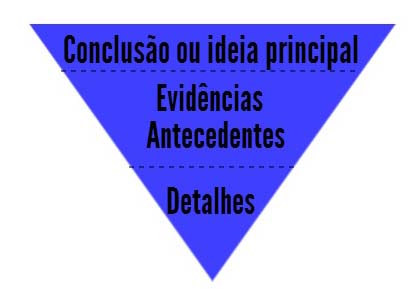 Consiste em começar pela conclusão, com os resultados ou pelo final. Ser claro e concreto no início. Depois, ampliar os detalhes incluindo o que, quando, onde, como e quem.