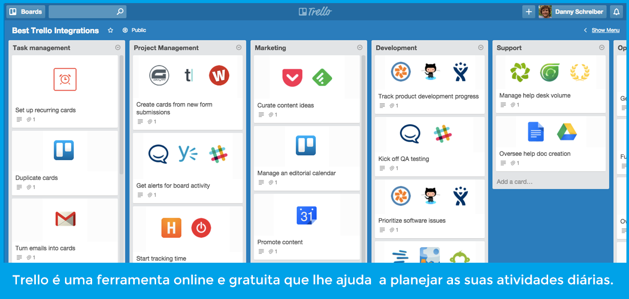 Para se organizar em relação a este ponto, recomendo o uso de Trello, uma ferramenta que permite organizar as suas atividades em Painéis de Tarefas, com checklists, alertas de calendário, arquivos anexos e outras funcionalidades bastante práticas. Para usar a plataforma, você só precisa se registrar com um nome de usuário e um correio eletrônico.
