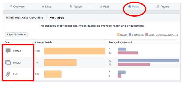 Não deixe de usar a ferramenta Insights para descobrir quais tipos de posts foram os mais bem sucedidos entre os seus fãs. Você deve ir à aba Publicações. Ali, há três sub abas: “Todas as publicações”, “Quando seus fãs estão conectados” e “Melhores tipos de publicação”. Nesta última, encontrará a informação sobre qual formato teve a maior participação, quantidade de comentários, curtidas, etc.
