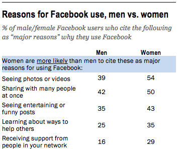E este, que mostra os principais motivos pelos quais homens e mulheres usam o Facebook: