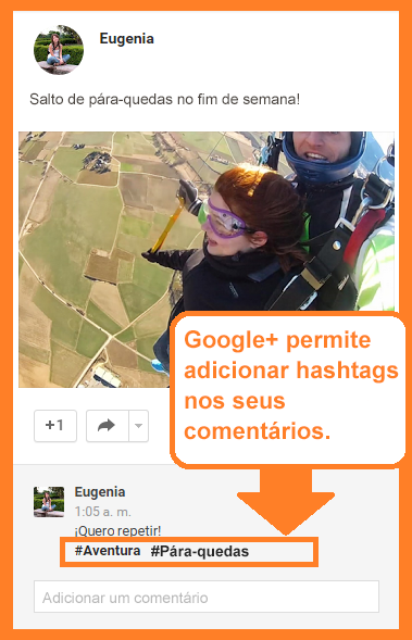 No Google+, você pode incluir hashtags nos seus conteúdos e comentários