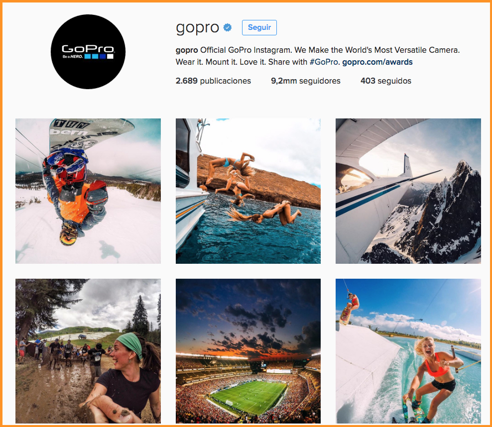 GoPro, por exemplo, tem um perfil invejável no Instagram, que é uma sucessão de imagens emocionantes onde diariamente publicam imagens captadas com uma de suas câmeras, levando assim a sua audiência a percorrer o Kilimanjaro, viajar a bordo de um veleiro que se encontra com um tubarão, ou surfar nas ondas australianas. Uma boa maneira de seduzir e fidelizar mais de 9,2 milhões de seguidores, você não acha?
