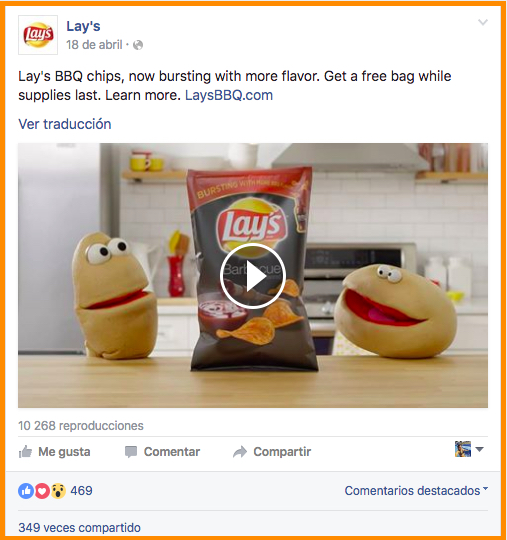 A marca Lay’s é uma das que mais (e melhor) utiliza o recurso dos vídeos: é fácil encontrá-los todos os dias tanto no Facebook quanto no Twitter e no Instagram.