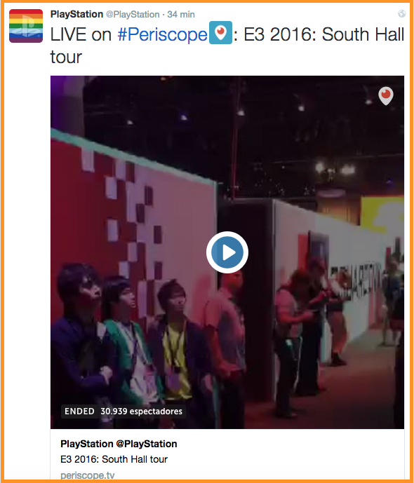 É ideal para levar a relação com os seus usuários ao próximo nível, assim como a PlayStation faz: realiza com frequência transmissões diretas no Twitter através do Periscope.